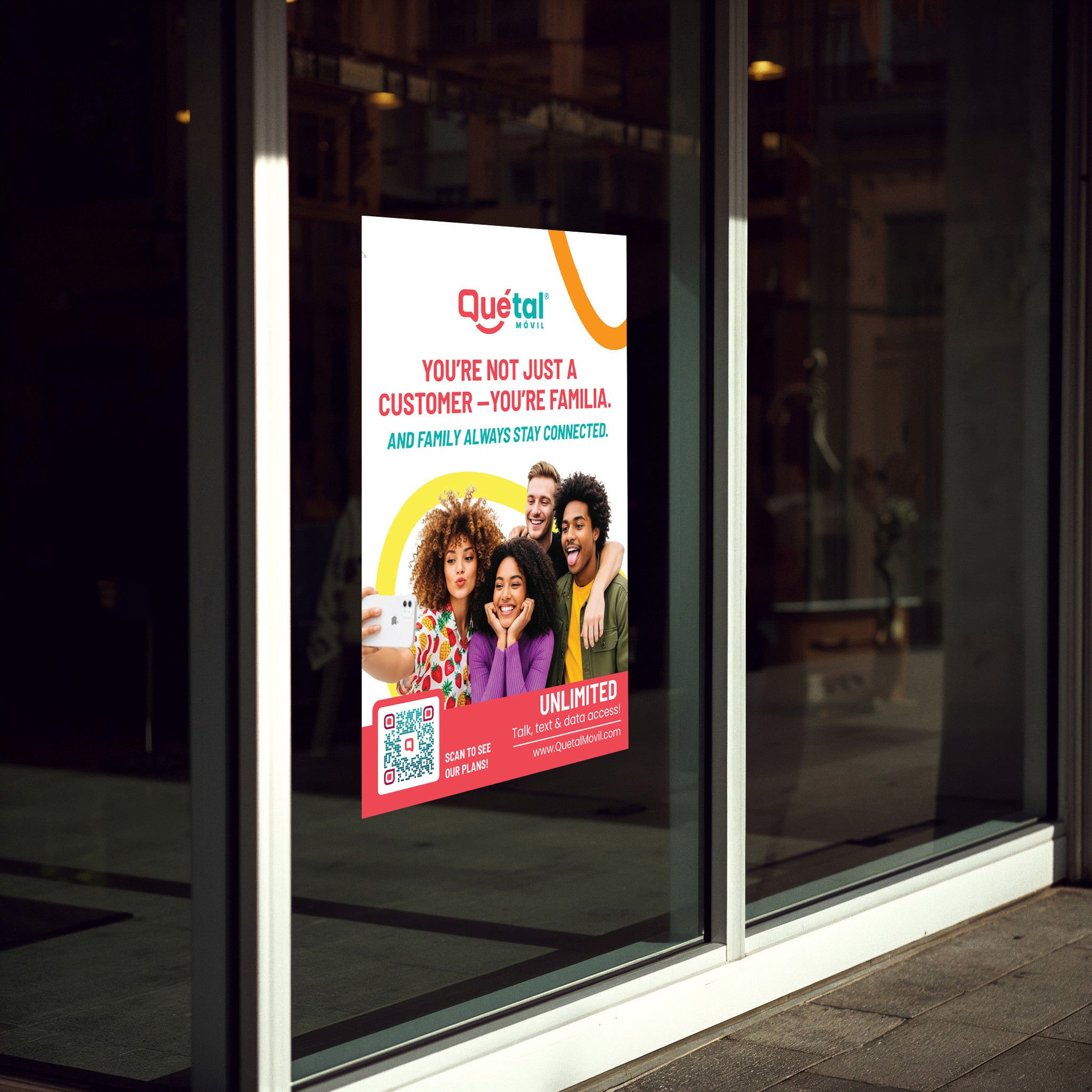 The result is a flexible and cohesive marketing system that supports Qué Tal Móvil’s expansion, strengthens brand recognition, and effectively connects with a bilingual audience across all physical touchpoints.